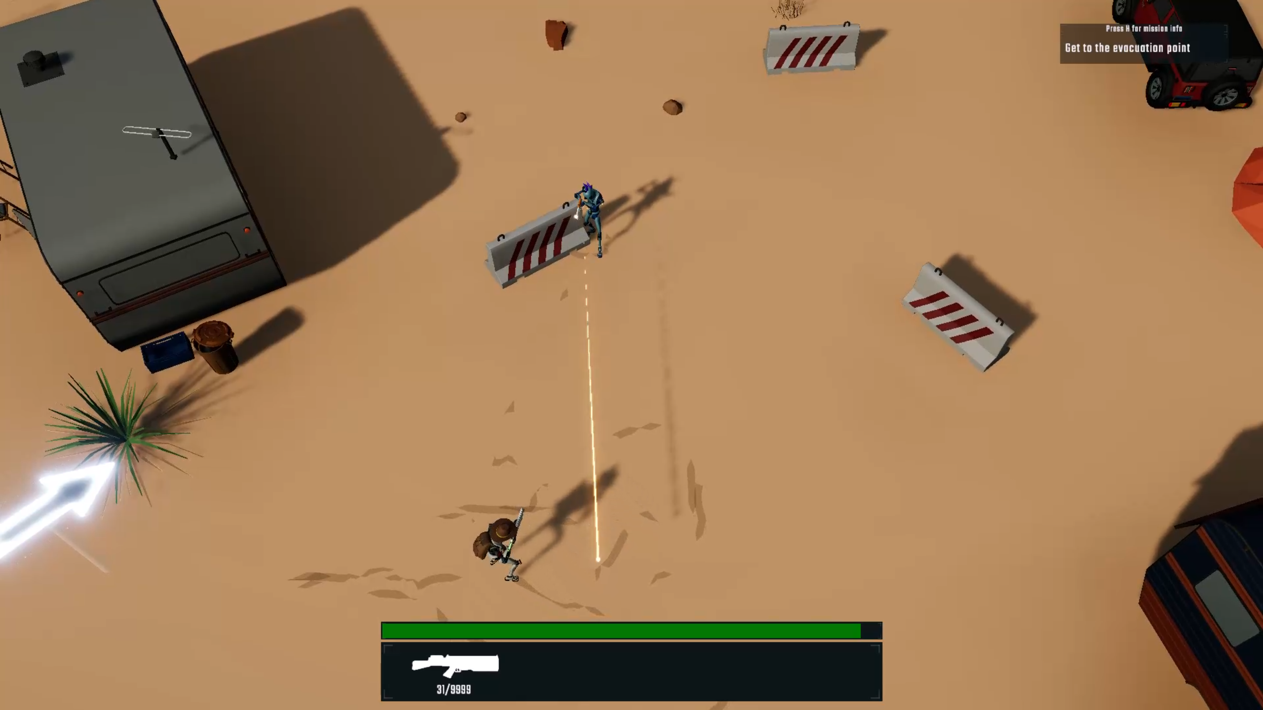 3D action shooter with a john wick feeling, featuring a vibrant dessert environment, procedurally generated levels, exciting enemies and boss battles.